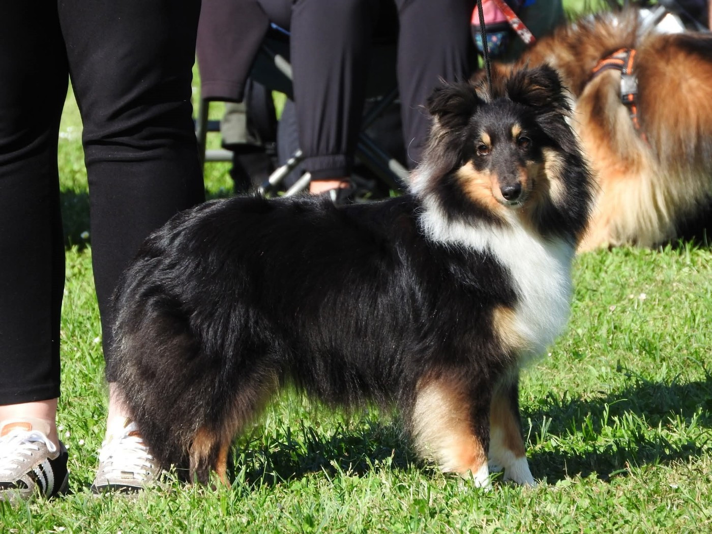 Jolie Femelle tricolore de 3 ans. D.C.C. Je souhaiterais un meilleur parallélisme crâne/chanfrein. Excellent port d'oreilles. Excellente encolure. Excellente poitrine. Excellents dos et proportions de corps. Excellentes aplombs avant et très bons aplombs arrière. Très bonnes angulations avant. Très bonne démarche dynamique. Excellent Classe Ouverte Femelle.